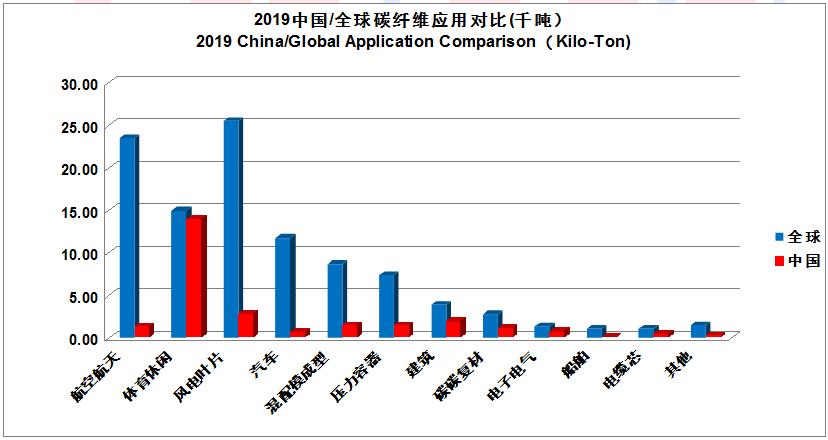 與2018年的特點(diǎn)類似,中國(guó)需求的超高增長(zhǎng)的主要驅(qū)動(dòng)者是風(fēng)電葉片市場(chǎng):2019年風(fēng)電消耗13,800噸碳纖維,對(duì)比2108年的8,000噸,增長(zhǎng)率72.5%。2019年用于風(fēng)電的國(guó)產(chǎn)碳纖維大約有1,000噸,而2018年是全部進(jìn)口。顯然,這幾年跳躍式增長(zhǎng)的風(fēng)電葉片用量(2017:3,060噸,2018:8,000噸,2019:13,800噸),給國(guó)內(nèi)碳纖維企業(yè)帶來(lái)了難得的發(fā)展機(jī)遇。