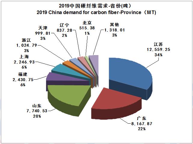 上千噸用量的省份有6家,江蘇由于風(fēng)電碳纖維的消耗,把長(zhǎng)期排名第一的廣東省推到第二名。江蘇省是中國(guó)歷史上首次突破萬(wàn)噸規(guī)模的省份。