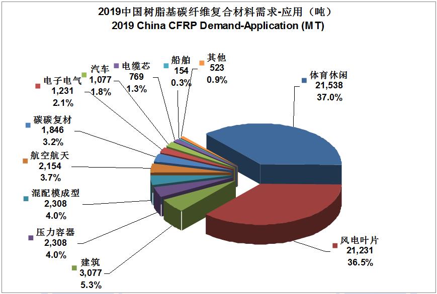 2019年,中國碳纖維復(fù)合材料的總量為58,215噸。給行業(yè)一個(gè)大致的概念。
